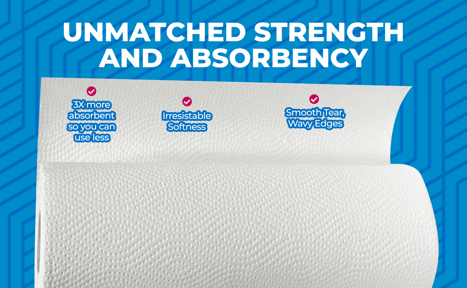 Ultra Absorbent & Tear-Resistant – Quickly soaks up spills,grease, and messes without tearing. Each roll has 120 full sheets forlong-lasting use1. Perfect Size & Fit – Standard-sized rolls that fit in allkitchen paper towel holders. Easy to store and convenient for daily cleaningtasks2. Lint-Free Cleaning – Leaves counters, appliances, and glassspotless without residue. Ideal as kitchen towels and hand towels3. Soft Yet Durable – Premium 3-ply construction combinesstrength with a gentle touch, making them safe for hands and effective on allsurfaces.Great Value for Families – With 120 sheets per roll and a practical2-pack (equals 4 regular pack)
