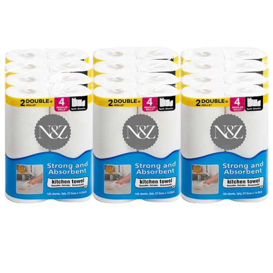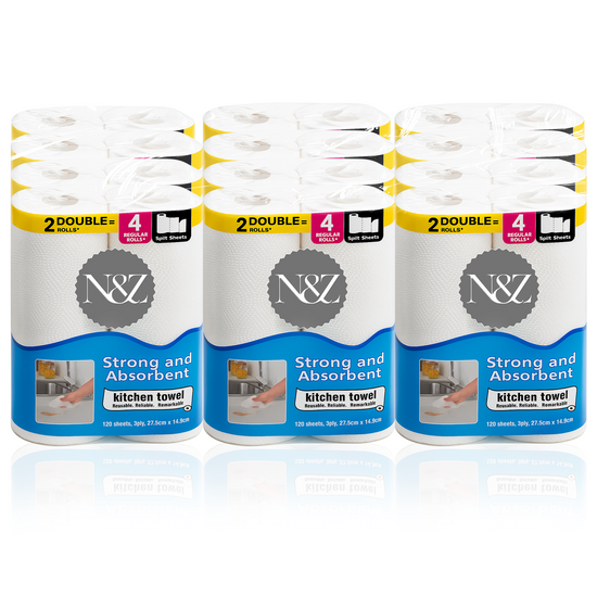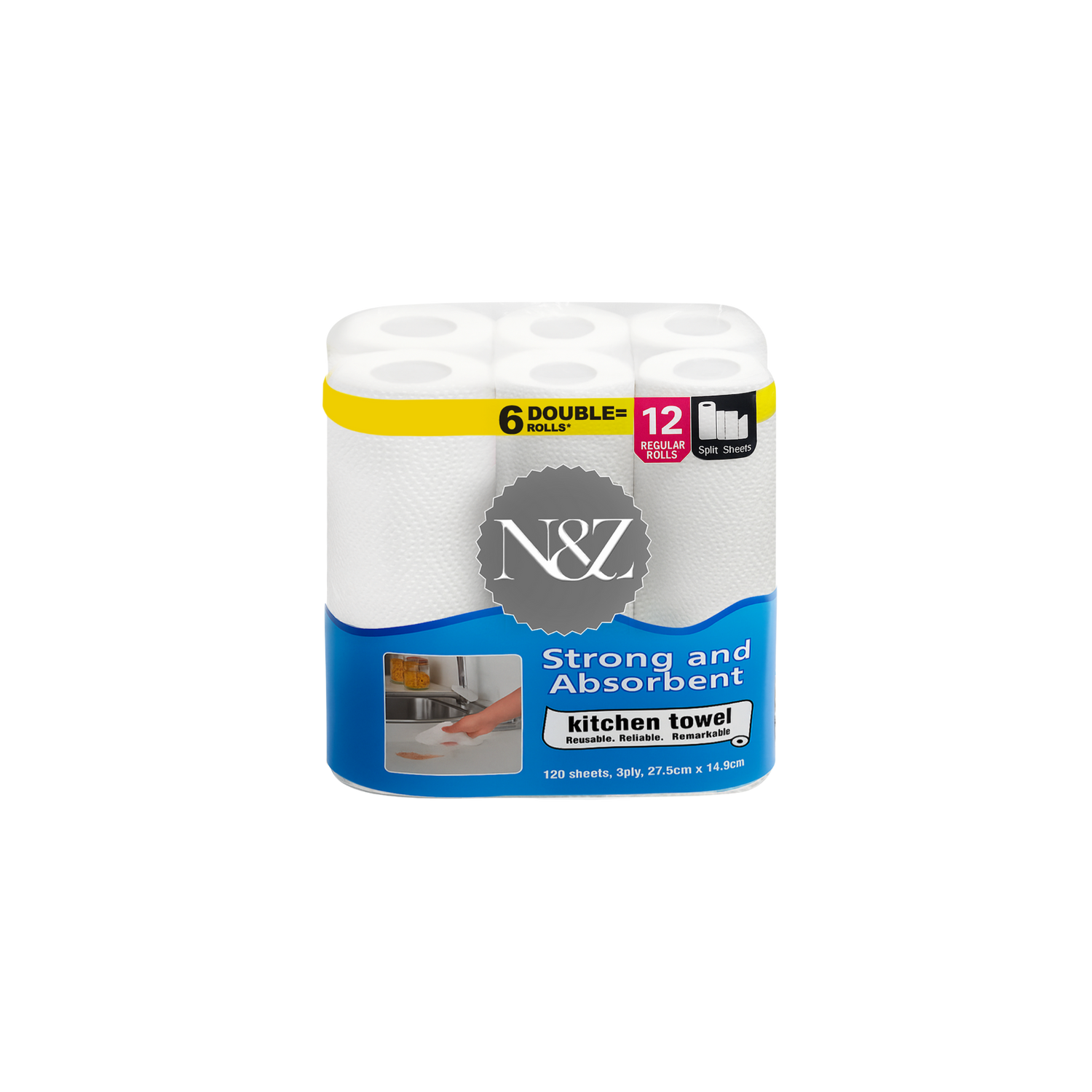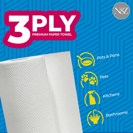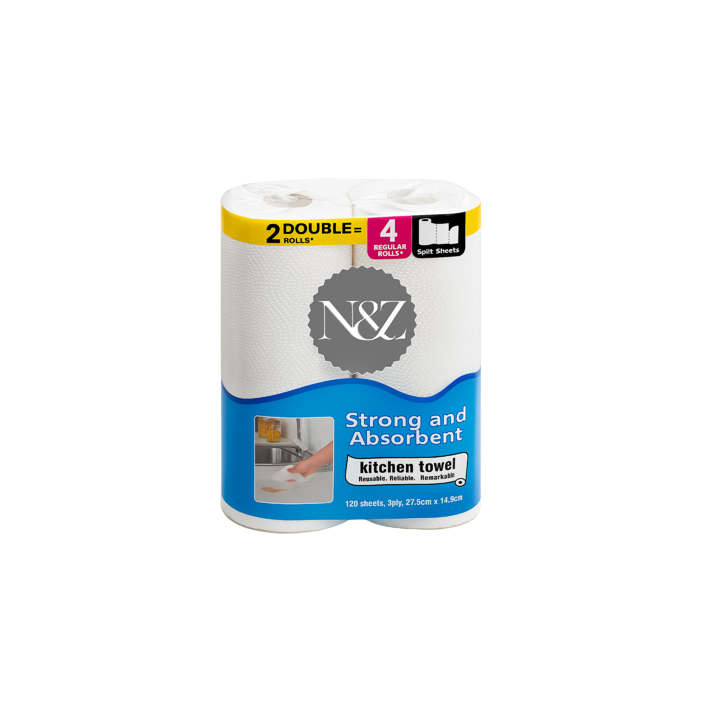 N&Z Kitchen Towels are designed to make everyday cleaning easier. Made from 100% virgin wood pulp, our 3-ply, ultra-absorbent sheets deliver strength and reliability you can count on. From kitchen spills to daily messes, N&Z keeps your home clean, fresh, and stress-free.